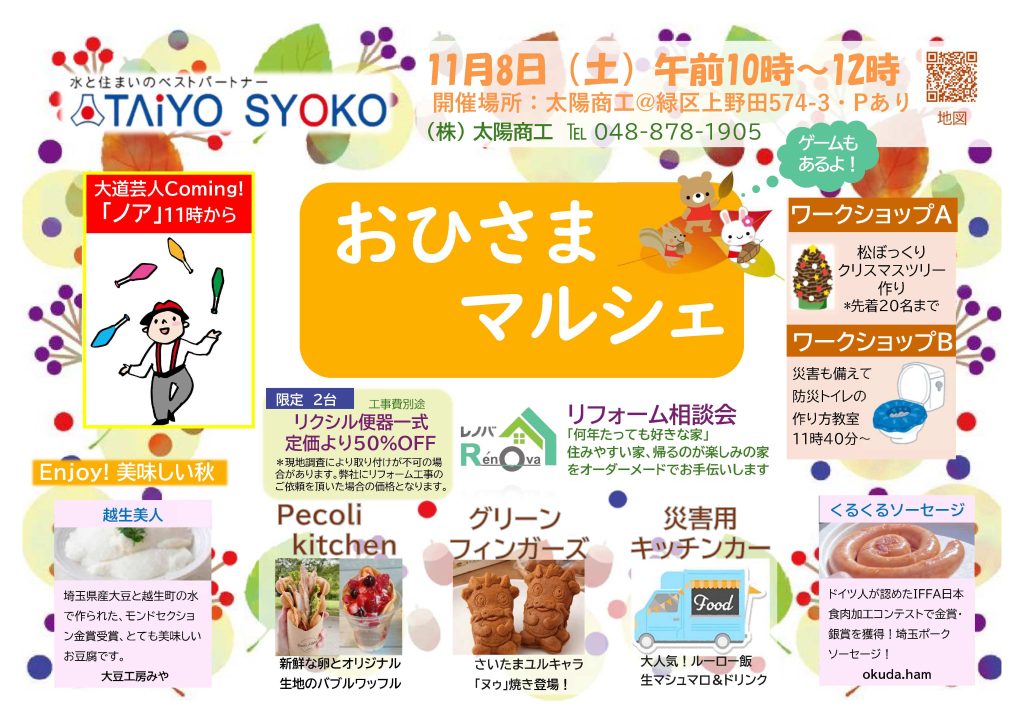 🌞11/8(土) 第5回 おひさまマルシェ 開催のお知らせ